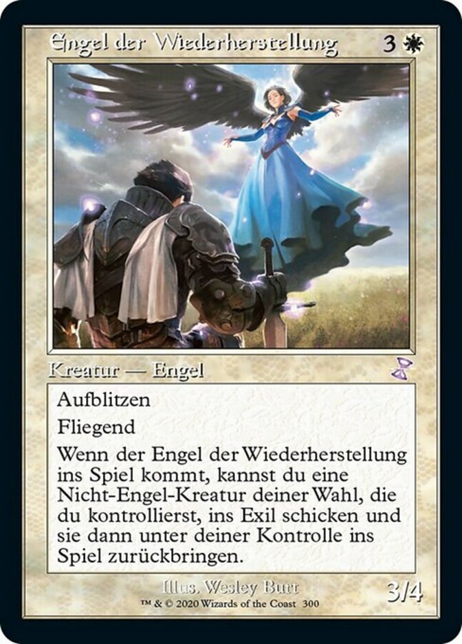| Rules | Flash Flying When Restoration Angel enters the battlefield, you may exile target non-Angel creature you control, then return that card to the battlefield under your control. |