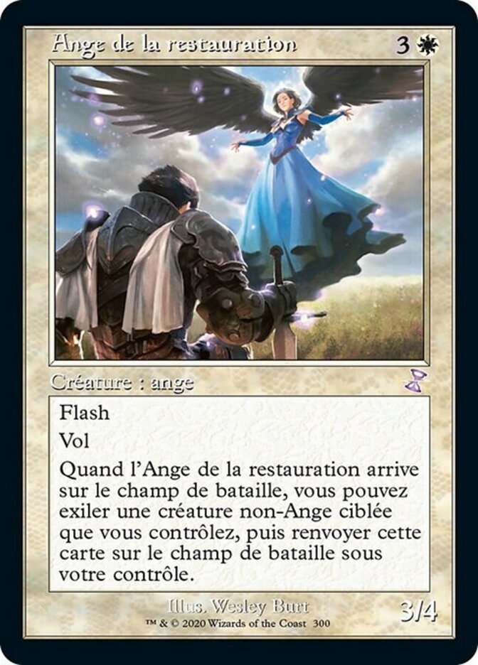 | Rules | Flash Flying When Restoration Angel enters the battlefield, you may exile target non-Angel creature you control, then return that card to the battlefield under your control. |
