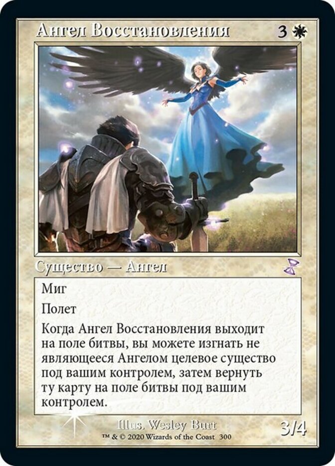 | Rules | Flash Flying When Restoration Angel enters the battlefield, you may exile target non-Angel creature you control, then return that card to the battlefield under your control. |