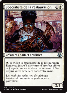 | Rules | , Sacrifice Restoration Specialist: Return up to one target artifact card and up to one target enchantment card from your graveyard to your hand. |