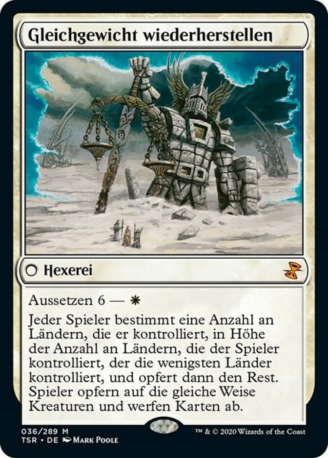 | Rules | Suspend 6— Each player chooses a number of lands they control equal to the number of lands controlled by the player who controls the fewest, then sacrifices the rest. Players sacrifice creatures and discard cards the same way. |
