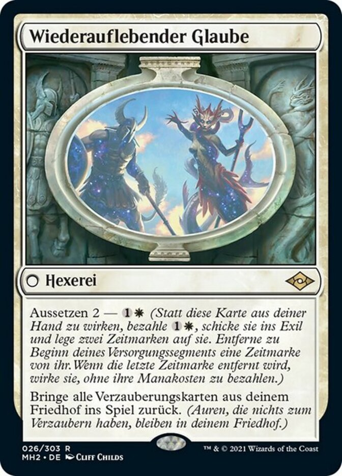 | Rules | Suspend 2— (Rather than cast this card from your hand, pay and exile it with two time counters on it. At the beginning of your upkeep, remove a time counter. When the last is removed, cast it without paying its mana cost.) Return all enchantment cards from your graveyard to the battlefield. (Auras with nothing to enchant remain in your graveyard.) |