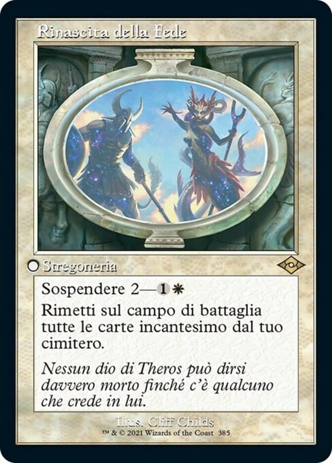 | Rules | Suspend 2— (Rather than cast this card from your hand, pay and exile it with two time counters on it. At the beginning of your upkeep, remove a time counter. When the last is removed, cast it without paying its mana cost.) Return all enchantment cards from your graveyard to the battlefield. (Auras with nothing to enchant remain in your graveyard.) |