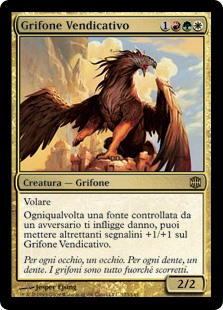 | Rules | Flying Whenever a source an opponent controls deals damage to you, you may put that many +1/+1 counters on Retaliator Griffin. |