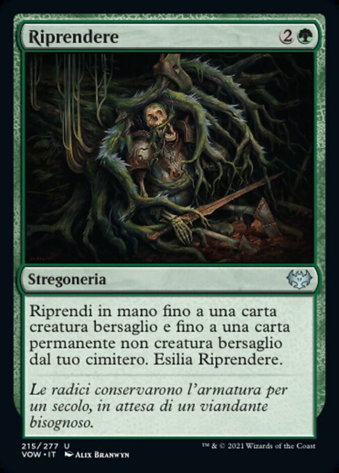 | Rules | Return up to one target creature card and up to one target noncreature permanent card from your graveyard to your hand. Exile Retrieve. |