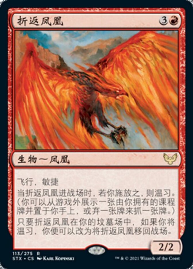 | Rules | Flying, haste When Retriever Phoenix enters the battlefield, if you cast it, learn. (You may reveal a Lesson card you own from outside the game and put it into your hand, or discard a card to draw a card.) As long as Retriever Phoenix is in your graveyard, if you would learn, you may instead return Retriever Phoenix to the battlefield. |