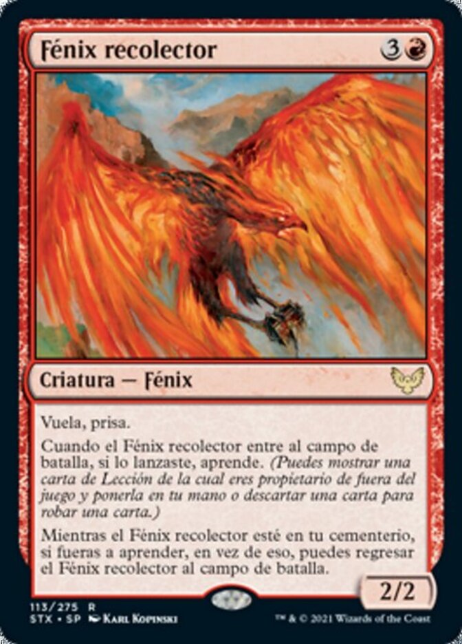 | Rules | Flying, haste When Retriever Phoenix enters the battlefield, if you cast it, learn. (You may reveal a Lesson card you own from outside the game and put it into your hand, or discard a card to draw a card.) As long as Retriever Phoenix is in your graveyard, if you would learn, you may instead return Retriever Phoenix to the battlefield. |
