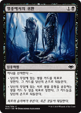 | Rules | Choose one — • Return target creature card from your graveyard to your hand. • Return two target creature cards that share a creature type from your graveyard to your hand. |