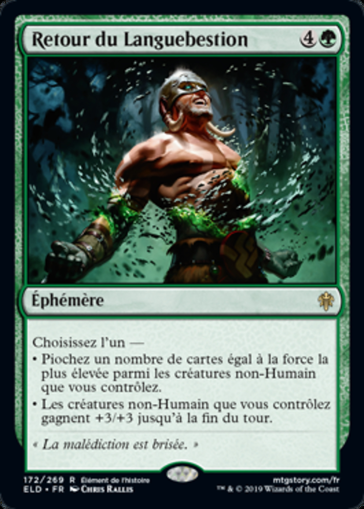 | Rules | Choose one — • Draw cards equal to the greatest power among non-Human creatures you control. • Non-Human creatures you control get +3/+3 until end of turn. |