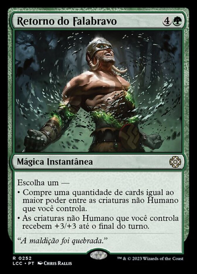 | Rules | Choose one — • Draw cards equal to the greatest power among non-Human creatures you control. • Non-Human creatures you control get +3/+3 until end of turn. |