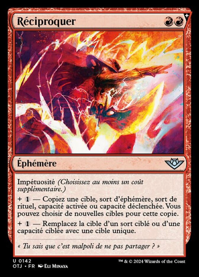 | Rules | Spree (Choose one or more additional costs.) + — Copy target instant spell, sorcery spell, activated ability, or triggered ability. You may choose new targets for the copy. + — Change the target of target spell or ability with a single target. |