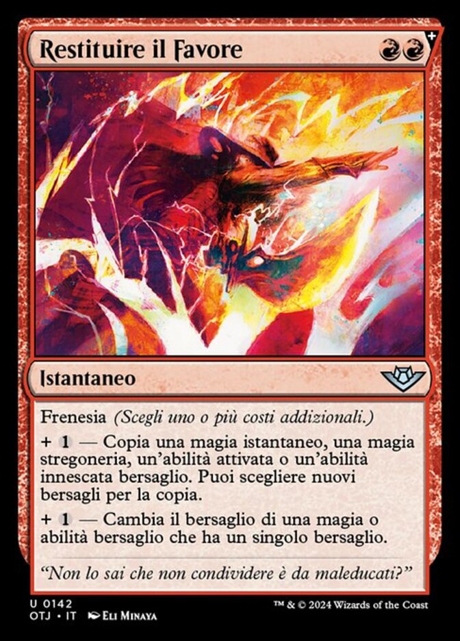 | Rules | Spree (Choose one or more additional costs.) + — Copy target instant spell, sorcery spell, activated ability, or triggered ability. You may choose new targets for the copy. + — Change the target of target spell or ability with a single target. |