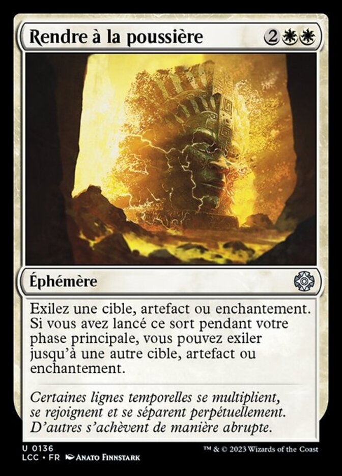 | Rules | Exile target artifact or enchantment. If you cast this spell during your main phase, you may exile up to one other target artifact or enchantment. |