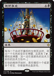 | Rules | Whenever a creature an opponent controls dies, create a Treasure token. (It's an artifact with ", Sacrifice this artifact: Add one mana of any color.") At the beginning of your upkeep, if you control ten or more Treasures, you win the game. |