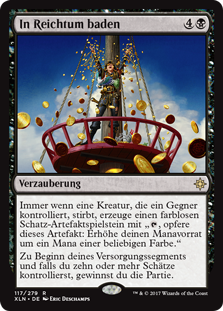| Rules | Whenever a creature an opponent controls dies, create a Treasure token. (It's an artifact with ", Sacrifice this artifact: Add one mana of any color.") At the beginning of your upkeep, if you control ten or more Treasures, you win the game. |
