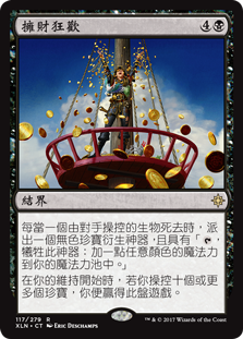 | Rules | Whenever a creature an opponent controls dies, create a Treasure token. (It's an artifact with ", Sacrifice this artifact: Add one mana of any color.") At the beginning of your upkeep, if you control ten or more Treasures, you win the game. |