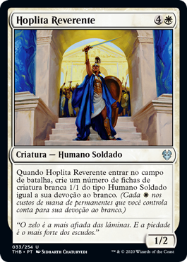 | Rules | When Reverent Hoplite enters the battlefield, create a number of 1/1 white Human Soldier creature tokens equal to your devotion to white. (Each in the mana costs of permanents you control counts toward your devotion to white.) |