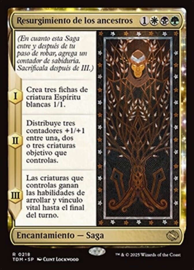 | Rules | (As this Saga enters and after your draw step, add a lore counter. Sacrifice after III.) I — Create three 1/1 white Spirit creature tokens. II — Distribute three +1/+1 counters among one, two, or three target creatures you control. III — Creatures you control gain trample and lifelink until end of turn. |