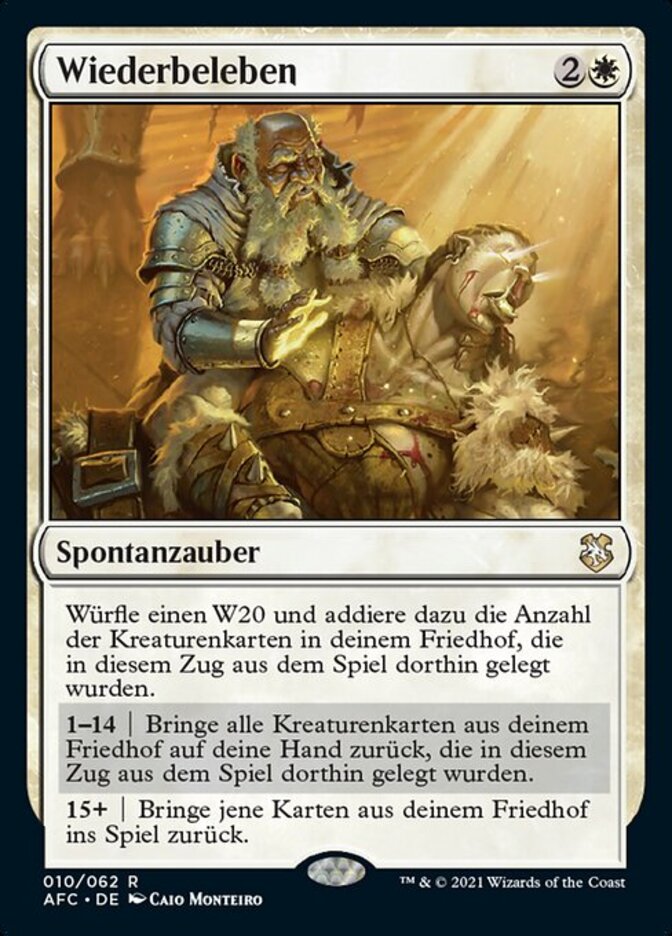 | Rules | Roll a d20 and add the number of creature cards in your graveyard that were put there from the battlefield this turn. 1—14 | Return all creature cards in your graveyard that were put there from the battlefield this turn to your hand. 15+ | Return those cards from your graveyard to the battlefield. |