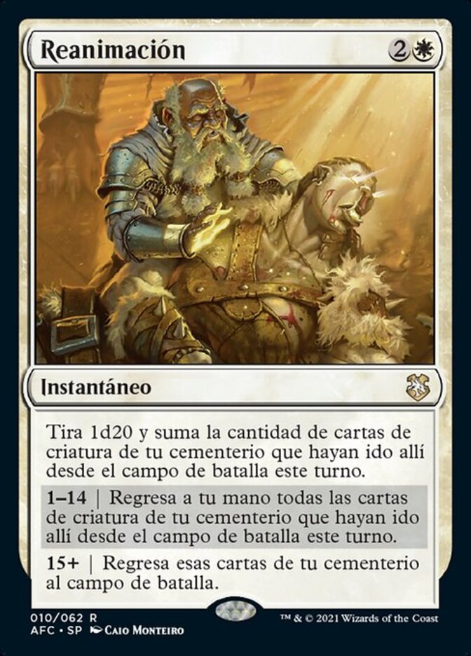 | Rules | Roll a d20 and add the number of creature cards in your graveyard that were put there from the battlefield this turn. 1—14 | Return all creature cards in your graveyard that were put there from the battlefield this turn to your hand. 15+ | Return those cards from your graveyard to the battlefield. |