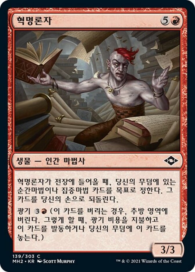 | Rules | When Revolutionist enters the battlefield, return target instant or sorcery card from your graveyard to your hand. Madness (If you discard this card, discard it into exile. When you do, cast it for its madness cost or put it into your graveyard.) |
