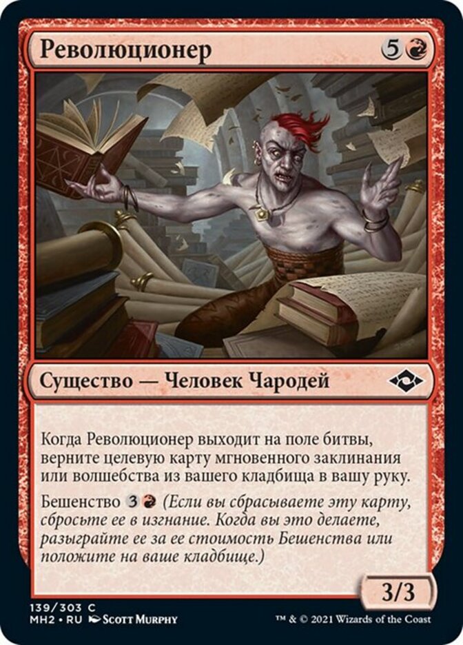 | Rules | When Revolutionist enters the battlefield, return target instant or sorcery card from your graveyard to your hand. Madness (If you discard this card, discard it into exile. When you do, cast it for its madness cost or put it into your graveyard.) |