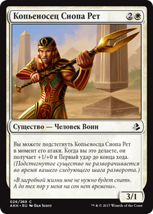 | Rules | You may exert Rhet-Crop Spearmaster as it attacks. When you do, it gets +1/+0 and gains first strike until end of turn. (An exerted creature won't untap during your next untap step.) |