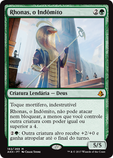 | Rules | Deathtouch, indestructible Rhonas the Indomitable can't attack or block unless you control another creature with power 4 or greater. : Another target creature gets +2/+0 and gains trample until end of turn. |