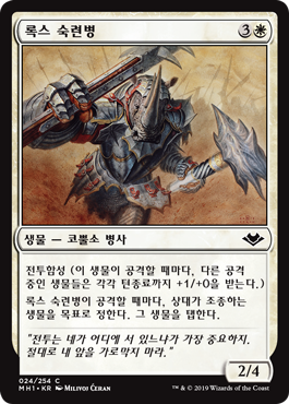 | Rules | Battle cry (Whenever this creature attacks, each other attacking creature gets +1/+0 until end of turn.) Whenever Rhox Veteran attacks, tap target creature an opponent controls. |