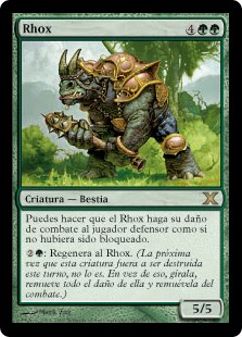 | Rules | You may have Rhox assign its combat damage as though it weren't blocked. : Regenerate Rhox. (The next time this creature would be destroyed this turn, it isn't. Instead tap it, remove all damage from it, and remove it from combat.) |