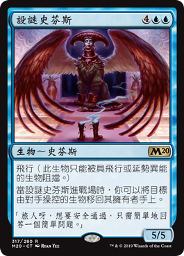 | Rules | Flying (This creature can't be blocked except by creatures with flying or reach.) When Riddlemaster Sphinx enters the battlefield, you may return target creature an opponent controls to its owner's hand. |
