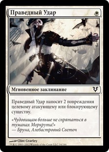 Rules Righteous Blow deals 2 damage to target attacking or blocking creature.