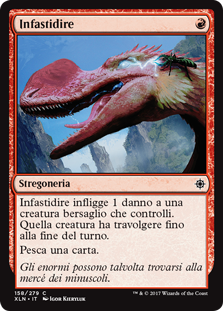 | Rules | Rile deals 1 damage to target creature you control. That creature gains trample until end of turn. Draw a card. |