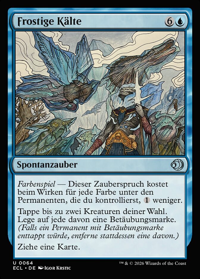 | Rules | Vivid — This spell costs less to cast for each color among permanents you control. Tap up to two target creatures. Put a stun counter on each of them. (If a permanent with a stun counter would become untapped, remove one from it instead.) Draw a card. |