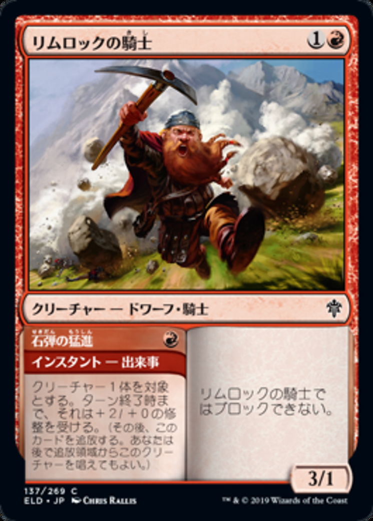 | Rules | Rimrock Knight can't block. // Target creature gets +2/+0 until end of turn. (Then exile this card. You may cast the creature later from exile.) |