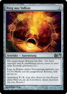 | Rules | Equipped creature has haste. (It can attack and no matter when it came under your control.) At the beginning of your upkeep, put a +1/+1 counter on equipped creature if it's red. Equip (: Attach to target creature you control. Equip only as a sorcery.) |
