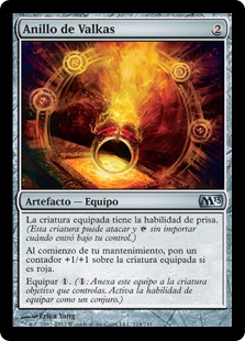| Rules | Equipped creature has haste. (It can attack and no matter when it came under your control.) At the beginning of your upkeep, put a +1/+1 counter on equipped creature if it's red. Equip (: Attach to target creature you control. Equip only as a sorcery.) |