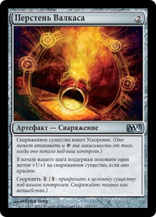 | Rules | Equipped creature has haste. (It can attack and no matter when it came under your control.) At the beginning of your upkeep, put a +1/+1 counter on equipped creature if it's red. Equip (: Attach to target creature you control. Equip only as a sorcery.) |