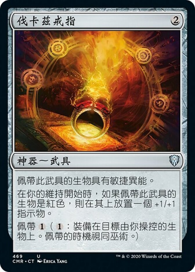 | Rules | Equipped creature has haste. (It can attack and no matter when it came under your control.) At the beginning of your upkeep, put a +1/+1 counter on equipped creature if it's red. Equip (: Attach to target creature you control. Equip only as a sorcery.) |