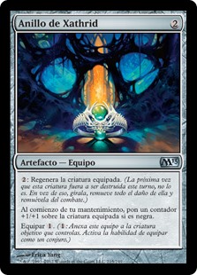 | Rules | : Regenerate equipped creature. (The next time that creature would be destroyed this turn, it isn't. Instead tap it, remove all damage from it, and remove it from combat.) At the beginning of your upkeep, put a +1/+1 counter on equipped creature if it's black. Equip (: Attach to target creature you control. Equip only as a sorcery.) |