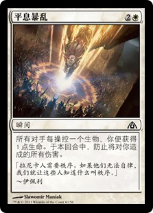 | Rules | You gain 1 life for each creature your opponents control. Prevent all damage that would be dealt to you this turn. |