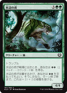 | Rules | Trample When Riparian Tiger enters the battlefield, you get (two energy counters). Whenever Riparian Tiger attacks, you may pay . If you do, it gets +2/+2 until end of turn. |