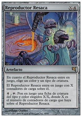 | Rules | As Riptide Replicator enters the battlefield, choose a color and a creature type. Riptide Replicator enters the battlefield with X charge counters on it. , : Create an X/X creature token of the chosen color and type, where X is the number of charge counters on Riptide Replicator. |
