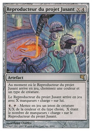 | Rules | As Riptide Replicator enters the battlefield, choose a color and a creature type. Riptide Replicator enters the battlefield with X charge counters on it. , : Create an X/X creature token of the chosen color and type, where X is the number of charge counters on Riptide Replicator. |