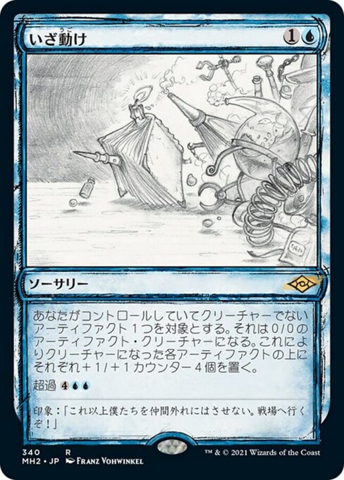 | Rules | Target noncreature artifact you control becomes a 0/0 artifact creature. Put four +1/+1 counters on each artifact that became a creature this way. Overload (You may cast this spell for its overload cost. If you do, change its text by replacing all instances of "target" with "each.") |