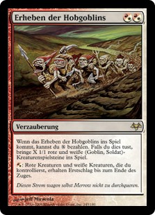 | Rules | When Rise of the Hobgoblins enters the battlefield, you may pay . If you do, create X 1/1 red and white Goblin Soldier creature tokens. : Red creatures and white creatures you control gain first strike until end of turn. |