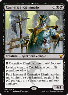 | Rules | Risen Executioner can't block. Other Zombie creatures you control get +1/+1. You may cast Risen Executioner from your graveyard if you pay more to cast it for each other creature card in your graveyard. |