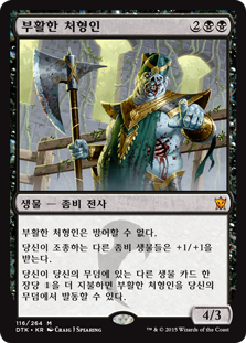 | Rules | Risen Executioner can't block. Other Zombie creatures you control get +1/+1. You may cast Risen Executioner from your graveyard if you pay more to cast it for each other creature card in your graveyard. |