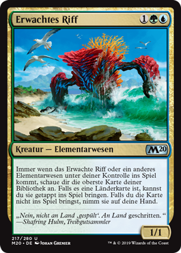 | Rules | Whenever Risen Reef or another Elemental enters the battlefield under your control, look at the top card of your library. If it's a land card, you may put it onto the battlefield tapped. If you don't put the card onto the battlefield, put it into your hand. |