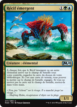| Rules | Whenever Risen Reef or another Elemental enters the battlefield under your control, look at the top card of your library. If it's a land card, you may put it onto the battlefield tapped. If you don't put the card onto the battlefield, put it into your hand. |